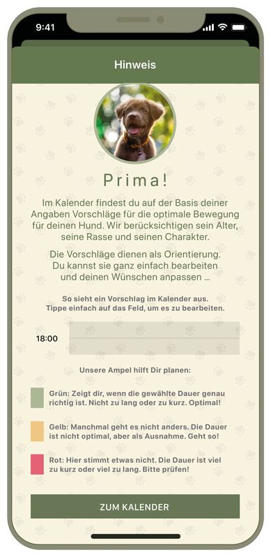 In unserem eigens zur Planung von Hundespaziergängen entwickelten Kalender fliessen viele Besonderheiten ein.