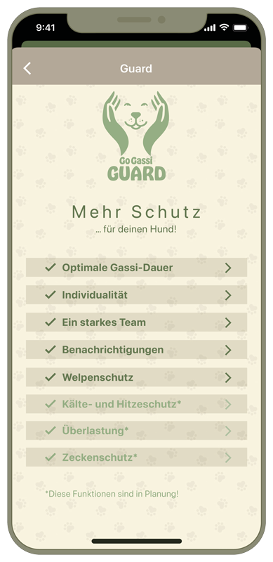 Unser einzigartiger GoGassi Guard überwacht, unterstüzt und schützt im Hintergrund deinen Liebling.