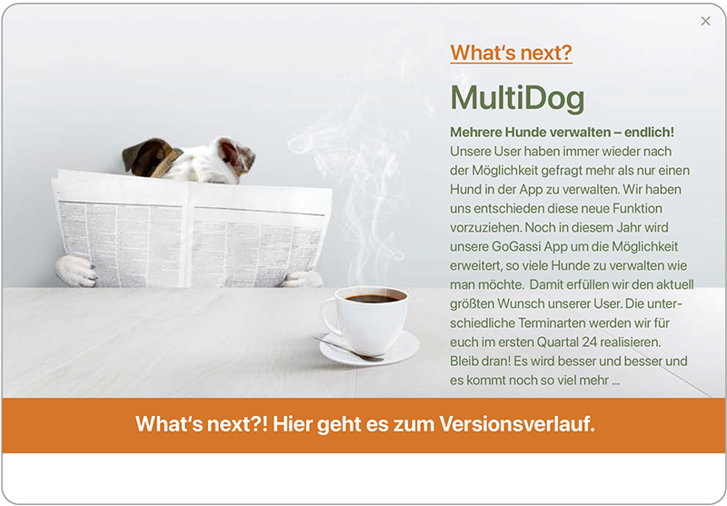GoGassi macht es einfach, sich gemeinsam, innerhalb der Familie oder mit Freunden, um einen Hund zukümmern. GoGassi plant, organisiert, verwaltet und erinnert. Das alles geht ganz einfach …